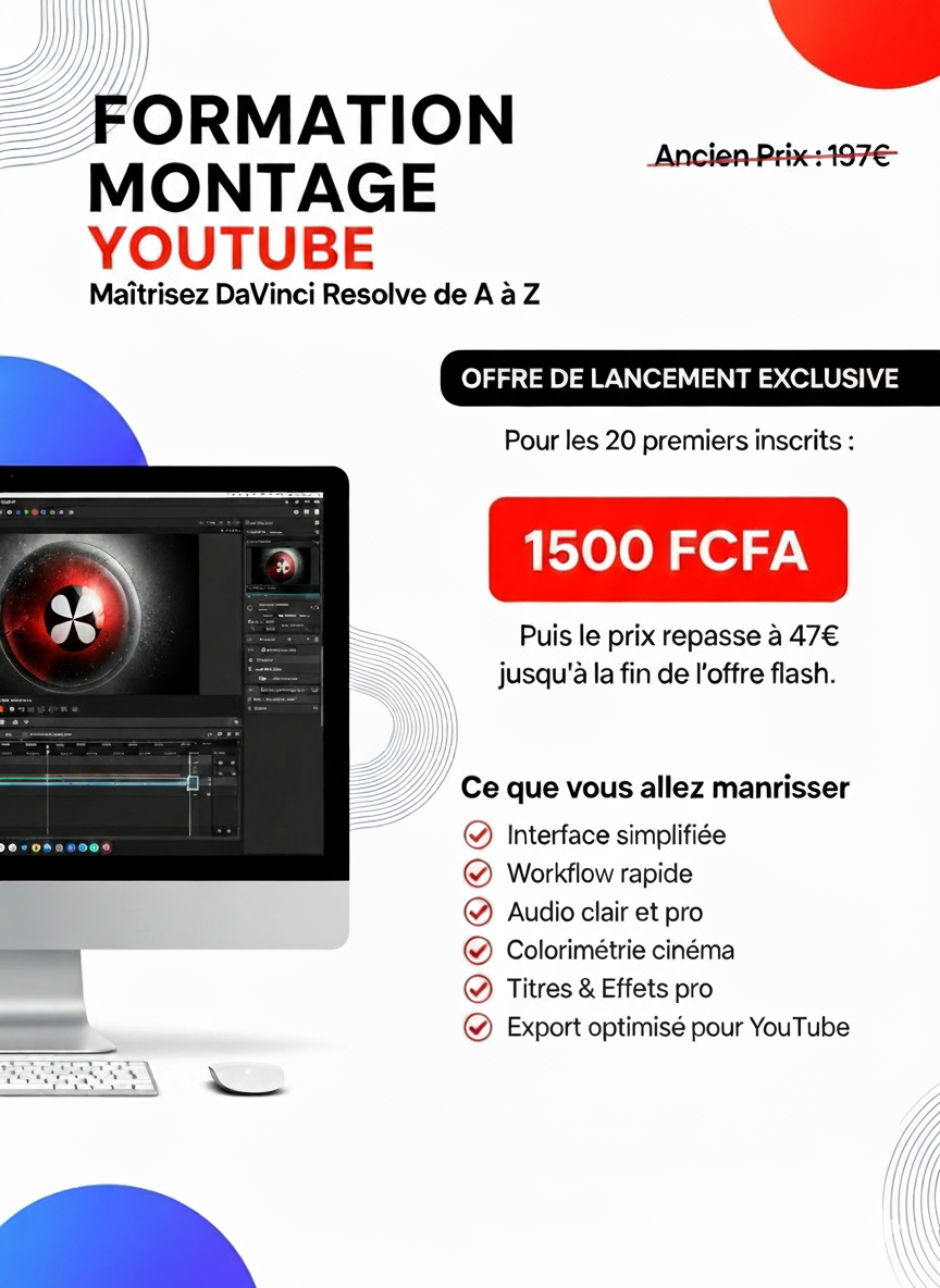 🎬 Apprenez le Montage Vidéo YouTube avec DaVinci Resolve ! 🎬 Vous voulez créer des vidéos professionnelles qui captivent votre audience dès les premières secondes ? 🚀 Avec DaVinci Resolve, transformez vos idées en contenus visuels incroyables, même si vous êtes débutant ! 💡 Ce que vous allez maîtriser : Couper et assembler vos vidéos comme un pro ✂️ Ajouter des effets, transitions et titres ✨ Corriger les couleurs pour un rendu cinématographique 🎨 Optimiser vos vidéos pour YouTube 📺 💥 Pourquoi choisir DaVinci Resolve ? Puissant, complet et gratuit 🆓 Utilisé par des pros du cinéma et YouTube 🎥 Montage vidéo, audio et color grading dans un seul outil ✅ 🚀 Résultat : des vidéos YouTube attrayantes, engageantes et prêtes à faire exploser vos vues ! 🔥 Ne perdez plus de temps, commencez aujourd’hui et créez vos vidéos comme un vrai pro !